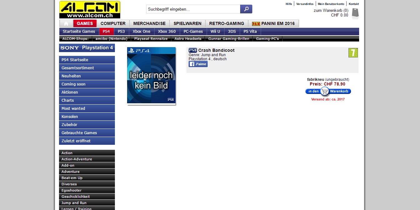 [EDIT] S’il on en croit le catalogue quelque peu farfelu du revendeur en question, le mieux serait de ne pas prendre au sérieux le fait que Crash Bandicoot y figure. En effet, de nombreux autres titres improbables y sont également listés…