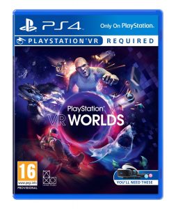 Nous découvrons donc les couvertures pour PlayStation VR Worlds, RIGS et Until Dawn Rush of Blood. Elles sont plutôt classiques mais tout de même très colorées et affichent un logo signifiant que le casque à réalité virtuelle est obligatoire. Cette mention est très visible donc il ne devrait pas y avoir de confusion possible. A noter que ces trois titres seront disponibles dès le mois d’octobre. Voici maintenant les jaquettes en question.
