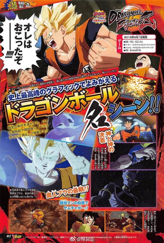 Nul doute que les trois lascars seront montrés en vidéo(s) dans les jours à venir, la Jump Festa 2017 approchant à grands pas. Dragon Ball FighterZ sortira sur PC, PlayStation 4 et Xbox One le 26 janvier 2018.