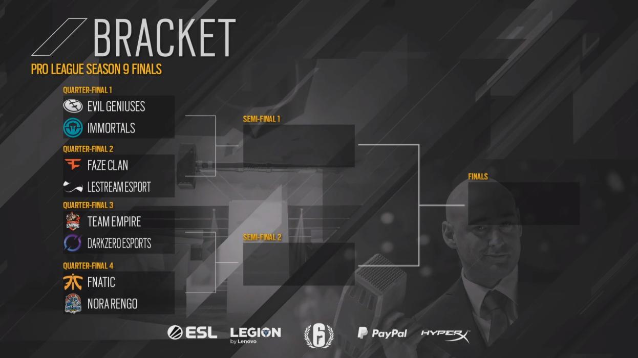 La Pro League sera donc suspendue en attendant les phases finales de la neuvième saison qui se dérouleront en direct du Palazzo del Ghiaccio à Milan ces 18 et 19 mai. Les meilleures équipes de chaque région viendront défendre leur titre et espérer remporter le cashprize de 275,000$ mis en jeu. Le bracket de ces phases finales a désormais été révélé. Parmi les équipes européennes, les joueurs de LeStream Esport affronteront les brésiliens du FaZe Clan et la Team Empire défiera DarkZero Esports durant les quarts de finale. Le bracket complet est à retrouver ci-dessous :