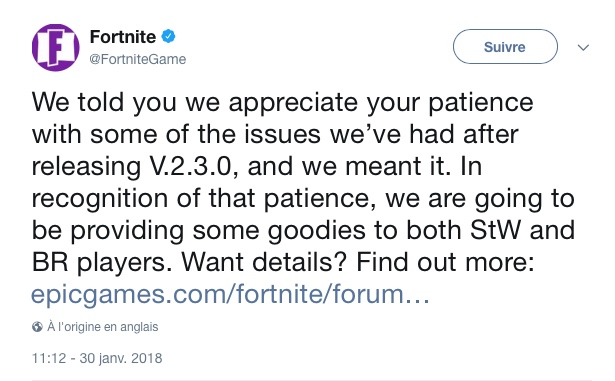 Pour les remercier de leur compréhension et surtout de leur patience, Epic Games a décidé de faire un petit geste :
