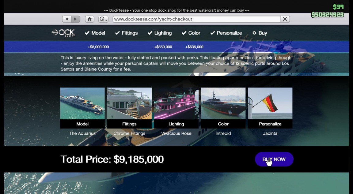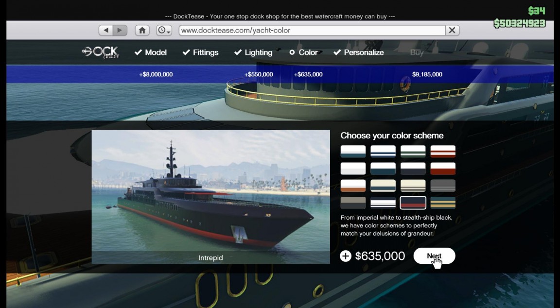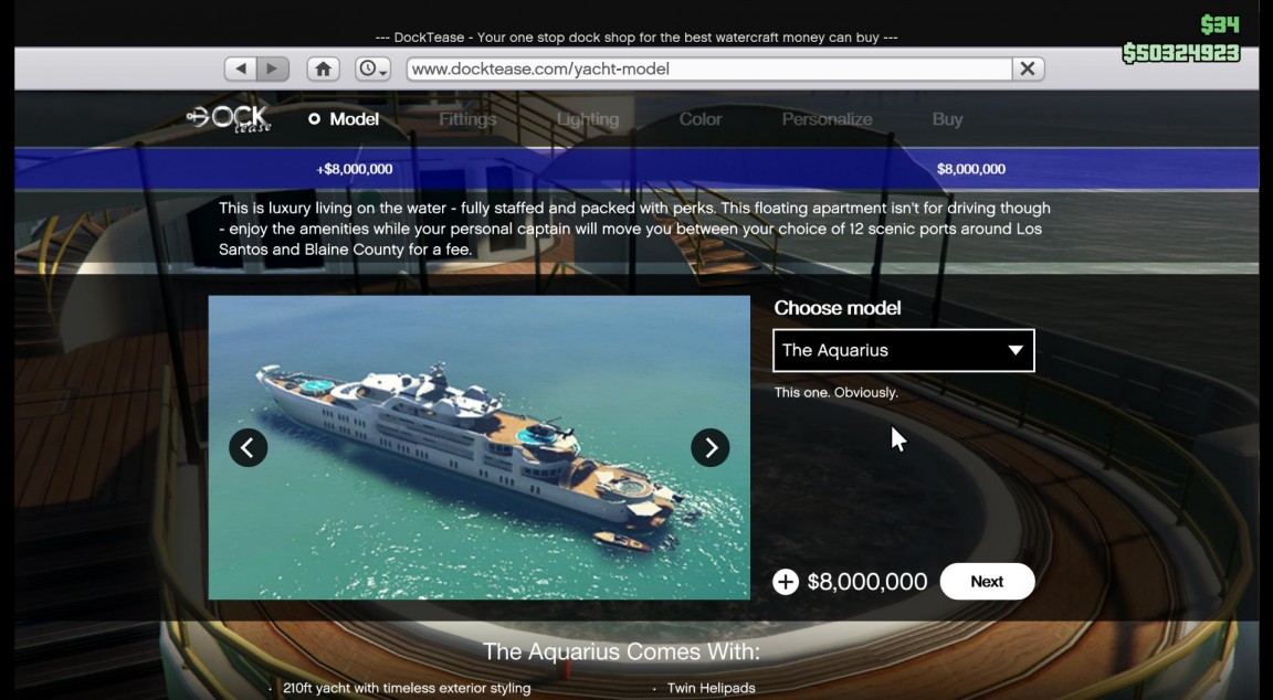 D’une taille de 1.3 Go, le patch 1.15 intronisera un ensemble de nouveaux véhicules et armements, destinés aux plus riches d’entre vous. Nous découvrons ainsi les premiers yachts de luxe, valant la bagatelle de neuf millions de Dollars (parmi la gamme Premium), une broutille pour quiconque aurait passé le plus clair de son temps sur GTA Online. Pour les autres, il ne vous reste qu’à enchaîner braquages et activités en ligne.