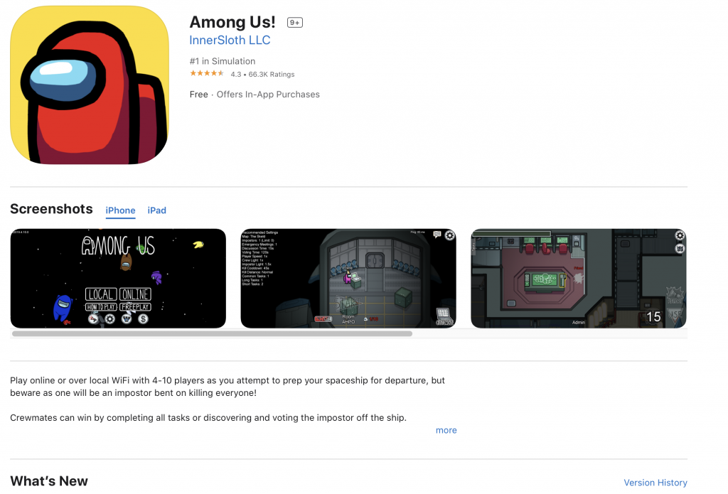 Pour les joueurs et joueuses Mac, la manipulation est plus délicate et semble impossible pour le moment. En effet, même si vous vous rendez sur l’application App Store de votre Mac, la page Among Us affichera un onglet indiquant que le jeu est seulement disponible sur iOS. Par contre vous pourrez y jouer sur votre iPad.