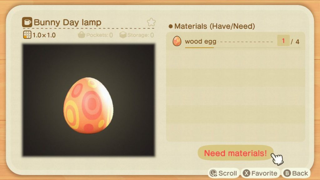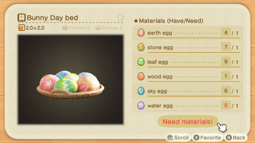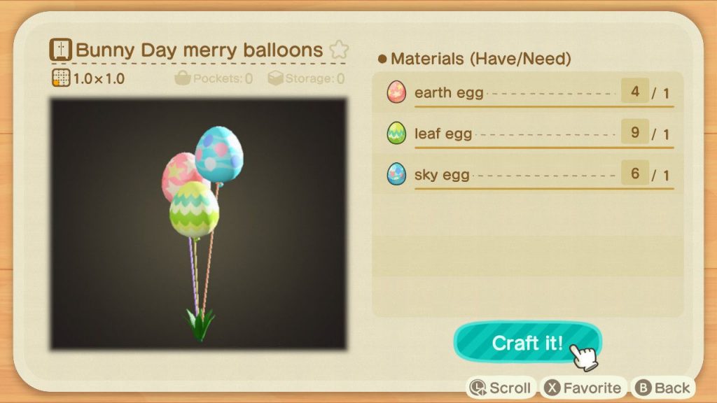 En faisant le tour de votre île chaque jour en effectuant les actions détaillées ci-dessus, vous devriez récolter un maximum d’œufs et de différents types. Suffisamment du moins pour commencer à fabriquer plusieurs items. Pour cela, il faudra nécessairement être en possession des plans de bricolage adéquats.