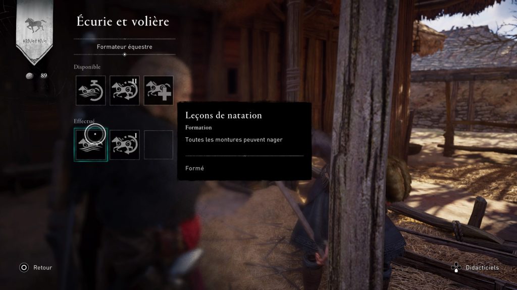 Une fois la conversation engagée avec lui, vous aurez accès aux séances d’apprentissage. Grâce à ce mécanisme, vous pourrez alors apprendre de nombreuses et nouvelles capacités à votre monture, notamment pour améliorer son endurance, sa santé et bien d’autres. Pour ce faire, il vous faudra sortir votre bourse et dépenser de l’argent afin de débloquer ces nouvelles capacités. Autant se le dire tout de suite, c’est relativement important tant il y a de fortes chances que vous passerez un bon moment en compagnie de votre fidèle destrier. On ne peut que vous recommander de prendre le temps de payer une petite visite à l’écurie du coin, quelques fois.