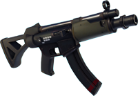 - Le pistolet-mitrailleur simple : Même si cette arme semble plutôt basique, elle peut se révéler très intéressante car sa cadence est très élevée, le chargeur contient 30 balles et elle inflige pas mal de dégâts : de 17 à 19 (commun à rare) pour le corps et 38 à 42 pour la tête.