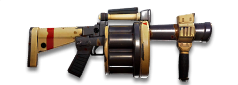 - Le lance-grenades : Le lance-grenades est principalement utilisé par les joueurs afin de casser les constructions adverses, situées à une bonne distance. Il permet également de mettre la pression aux adversaires. Il est possible de le looter en rare, en épique et en légendaire pour des dégâts allant de 100 à 110 pts.