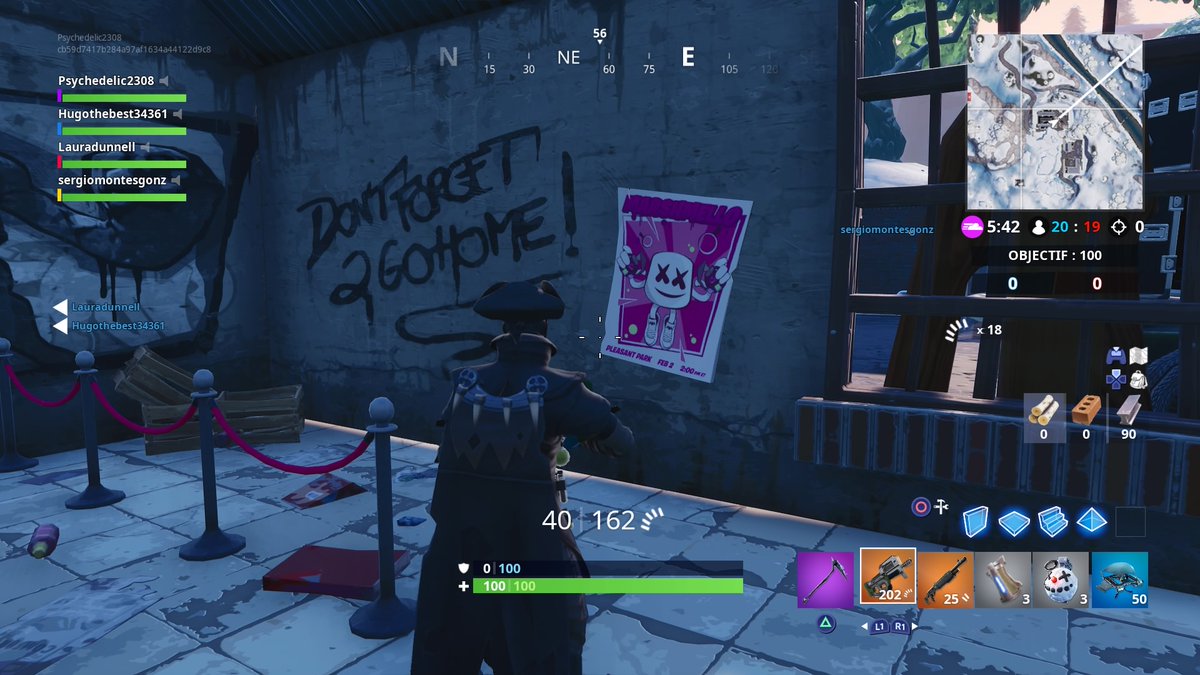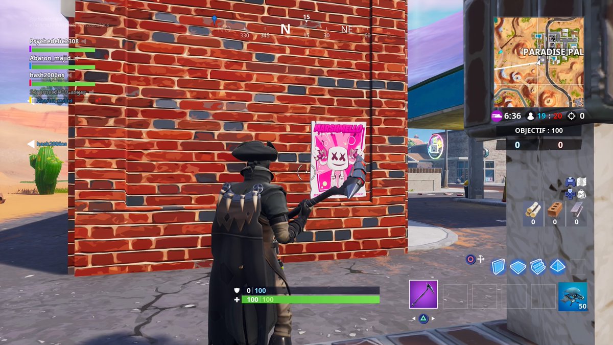 Epic Games a décidé récemment de collaborer avec le DJ Marshmello pour proposer un event sur les serveurs de son jeu à succès, Fortnite et plus précisément son mode PVP, Fortnite Battle Royale. L’événement est d’ores et déjà disponible et propose de réaliser 3 défis différents sur 3 jours consécutifs. Celui d’aujourd’hui est le suivant : « trouver un poster du concert Marshmello ». Si vous n’avez pas encore trouvé l’une de ses affiches, voici des éléments de réponses en images. Evidemment, il ne s’agit pas de tous les posters présents sur la carte, mais que d’une petite sélection. En accomplissant ce défi, vous gagnerez le spray Marshello.