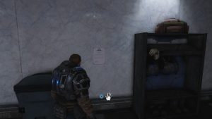 Après la cinématique du combat contre Fahz, tournez-vous légèrement sur votre gauche, comme pour regarder le robot au sol, sur le mur, à gauche d’une armoire, vous trouverez l’avis.