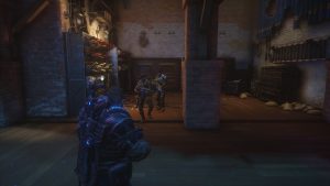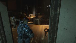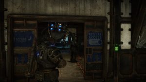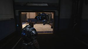 Une fois le combat terminé, longez votre gauche, une fois le couvert passé, remarquez une porte sur votre gauche, prenez là et montez, vous trouverez l’autorisation sur une machine.