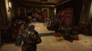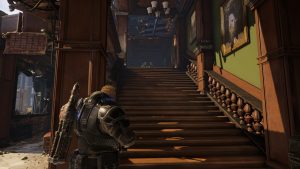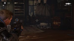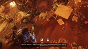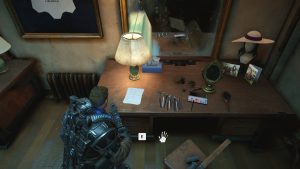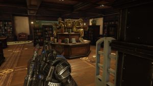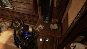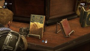 Avant de rejoindre l’escouade de Carmine et de découper la chaîne de la porte, retournez-vous et pénétrez dans la librairie, contournez la statue centrale et récupérer le livre.