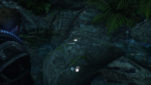 Après votre descente, suivez le chemin sur votre gauche, dès que vous sortez de l’eau observez un passage derrière un petit monticule, montez puis descendez pour récupérer la Pièce honorifique de Garde Onyx