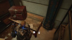 Après le premier combat du chapitre, Del vous propose de couper à travers l’hôtel. Ouvrez la porte avec votre Lanzor, puis dès que possible descendez sur la plate-forme de chargement, observez une entrée, grimpez et prenez directement sur votre gauche. Au fond, sur une table vous trouverez la note.
