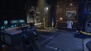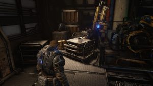Juste après la photo, suivez Baird, une fois rentré dans la nouvelle pièce (Baird vous proposant un nouvel équipement pour Jack), tournez à gauche, dans le fond, posé sur une caisse vous trouverez le schéma.