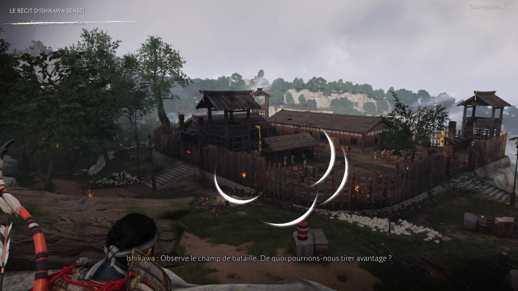 - Une fois au dojo, vous remarquerez qu’une attaque a eu lieu. Inspectez le dojo et suivez les traces de pas jusqu’à la maison, vous y rencontrerez Ishikawa. Le maitre archer vous fera savoir qu’une attaque mongole a eu lieu et que son élève, Tomoe, est porté disparue.
