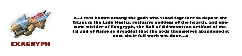 Une fois toutes les armes précédentes débloquées et avec 8 clés chthoniennes, vous pourrez faire l’acquisition d’Exagryph, anciennement possédée par Hestia. Cette arme propose des attaques explosives automatiques ou manuelles (en fonction de votre choix) et permet d’effectuer des dégâts de zone.