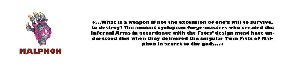 Anciennement arme de Demether, il faudra disposer de 8 clés chthoniennes pour la débloquer. Elle est plutôt intéressante car elle permet d’enchaîner très rapidement des attaques et ainsi d’effectuer des combos plutôt dévastateurs à courte portée.