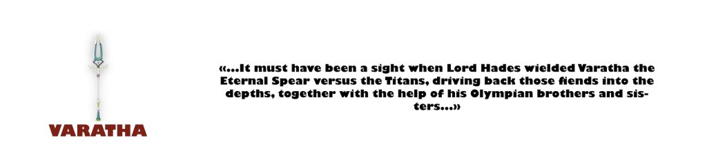La lance d’Hades, Varatha, est à débloquer après l’obtention de 4 clés chthoniennes. Sa portée permet d’attaquer les ennemis à courte et moyenne distance, ce qui en fait une arme plutôt redoutable. Pour tout vous dire, elle a notre préférence depuis son ajout dans l’Early Access.