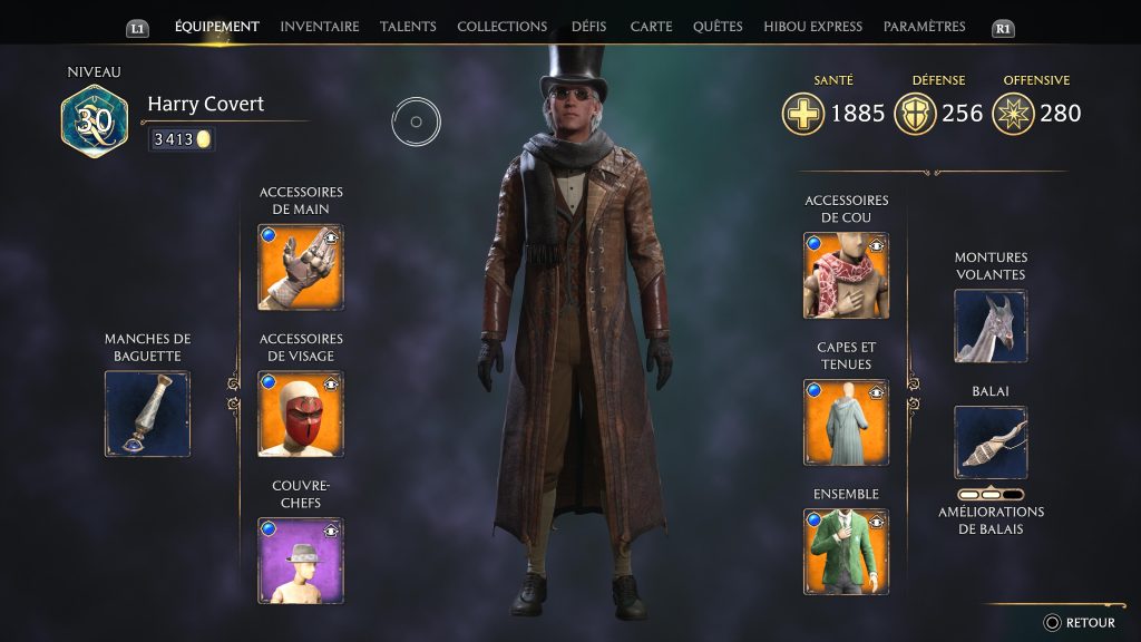 Cela passera notamment par diverses pièces d’équipement (à trouver dans des pièces secrètes gardées par des énigmes ou à acheter avec l’argent trouvé dans les coffres verrouillés avec un oeil) qui apporteront des bonus/malus à nos statistiques mais également d’autres atouts. Toutefois, certains objets dans Hogwarts Legacy : L’héritage de Poudlard offrent des propriétés cosmétiques uniquement. Comprenez par là qu’il s’agit d’une sorte de skin appliqué à l’équipement porté par le personnage et qui n’a aucun impact sur ses différentes caractéristiques.