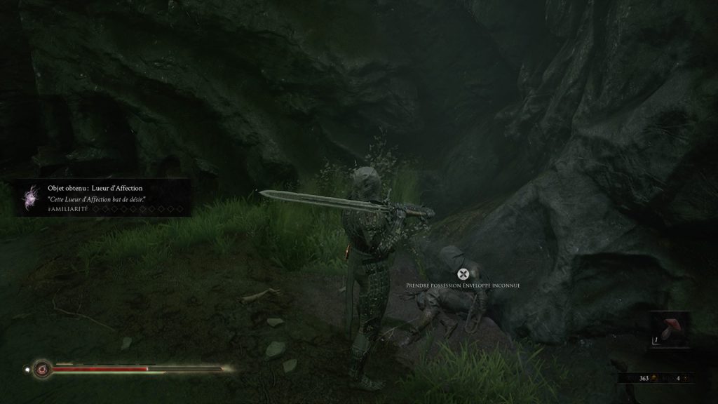 Attention, dans la démo, il était possible de trouver cette enveloppe charnelle dans la Chambre Abandonnée. Mais ce n’est plus le cas, dans le jeu complet.