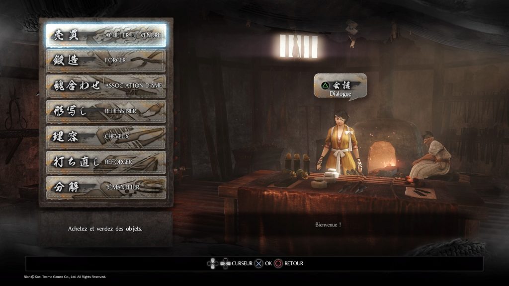 Au fur et à mesure de votre progression, vous obtiendrez des objets à remettre au forgeron afin d’étoffer la liste d’objets que vous pourrez vous procurer à la forge. La forge pure n’est pas forcément ce qu’il y a de plus utile vu la quantité de Loot que vous obtiendrez sur les cadavres de vos ennemis, et après plusieurs heures de jeu, nous en cherchons encore l’intérêt. Cependant, il sera nécessaire de faire travailler notre forgeronne afin de gagner des points de fidélité qui vous permettront d’obtenir de nombreuses réductions sur les éléments qui vont suivre.
