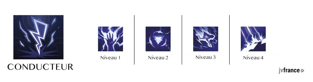 - Surtension : Le coût en mana des différents sorts bénéficie d’une réduction de 100%, durant 4 secondes, lorsque vous lancez le sort tempête d’éclair.