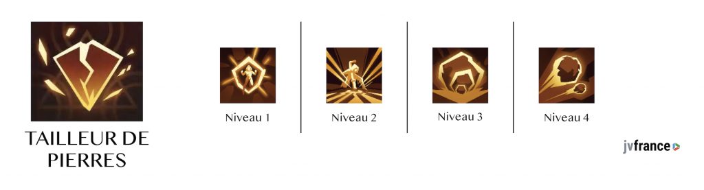 La classe Tailleur de pierre est en lien avec le gant de pouvoir de pierre. Il bénéficie lui aussi de 4 niveaux.