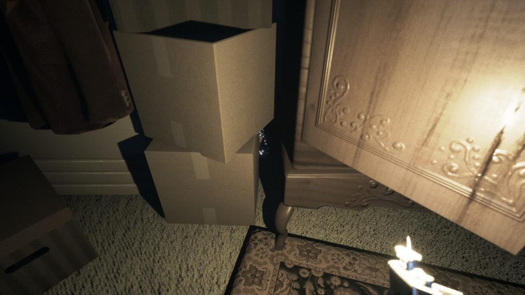 - Dans le garage, en haut des escaliers en bois, poussez la caisse à outils rouge se situant contre le mur pour faire apparaitre un passage secret. Glissez-vous à l’intérieur pour trouver la poupée russe à gauche de la pièce.