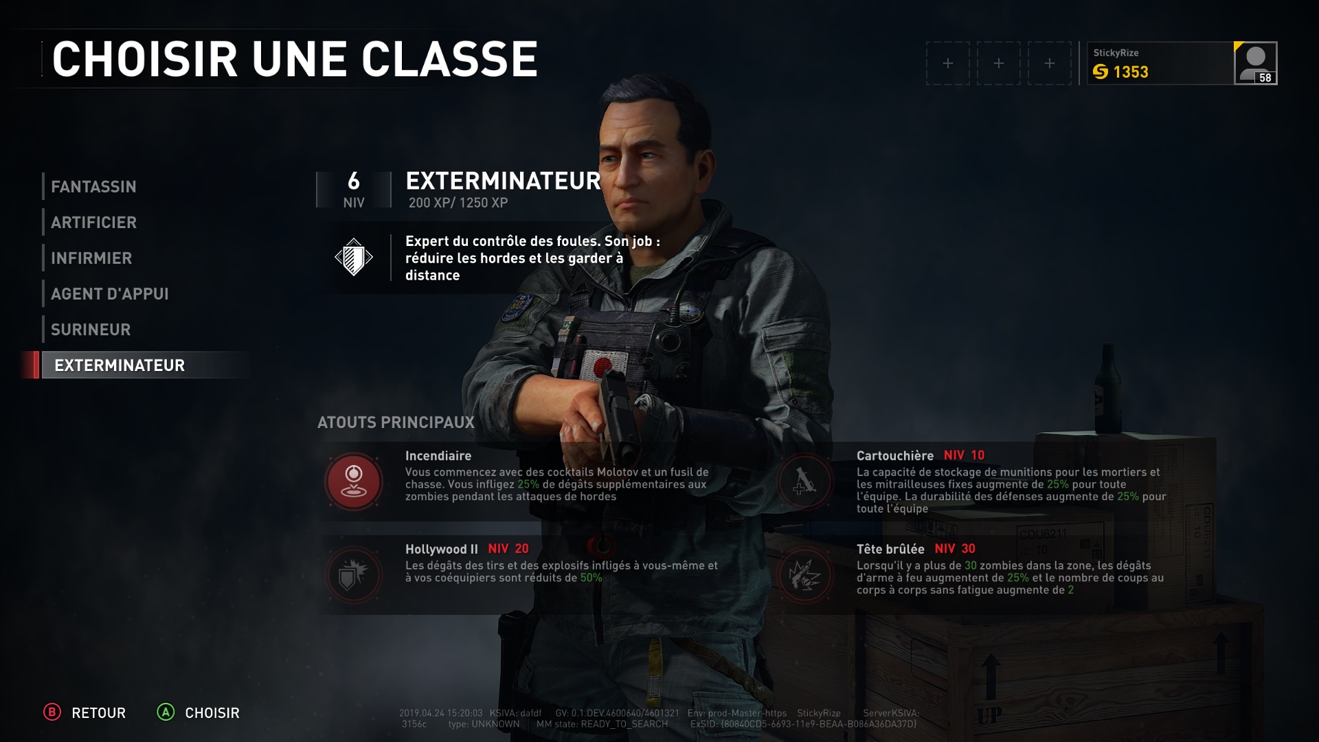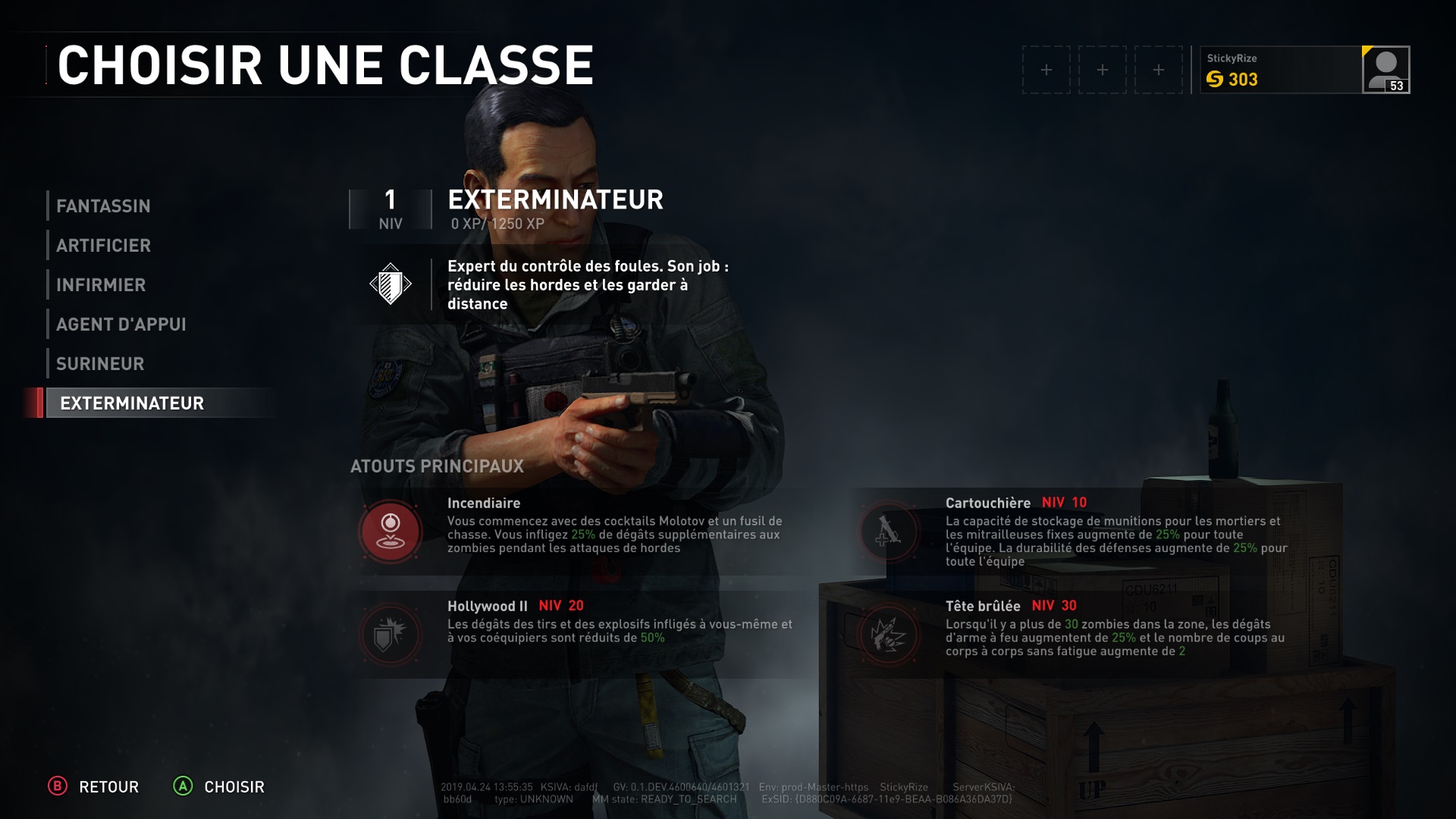 - Classe : Exterminateur niveau 1 et 0 expérience
