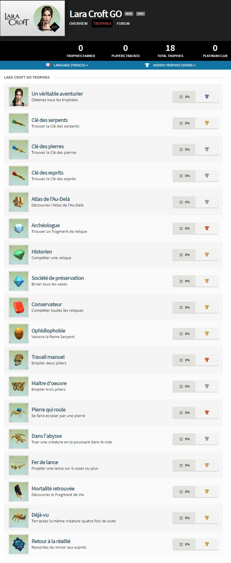 L’excellent titre de réflexion de Square Enix Montreal, non confirmé sur consoles à ce jour par le développeur, a en effet été repéré sur Exophase – et d’autres sites du genre – avec une liste de trophées, similaire aux succès Google Play. Une bonne nouvelle qui pourrait sans doute pointer le bout de son nez lors de la PlayStation Experience, aux côtés d’annonces supplémentaires, ce week-end.