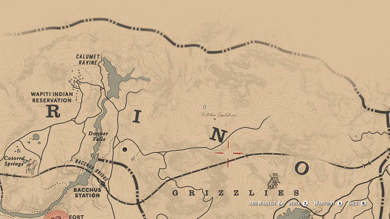 Après avoir bu le liquide mystérieux, le joueur s’évanouira et se lèvera dans la demeure des sorcières. Une fois bu, vous ne pouvez plus le boire. Dans la hutte, une musique étrange est jouée et vous pouvez entendre le bruit d’un chaudron bouillonnant. Il y a de nombreux objets à prendre ici et un coffre à fouiller. Vous pouvez trouver le chaudron de sorcière en utilisant la carte ci-dessous. Le moyen le plus rapide pour s’y rendre et d’aller à la resserve indienne de Wapiti