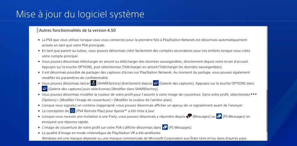 A noter que les applications smartphones « PS4 Remote Play », « PlayStation Communities » et « PlayStation Messages » profitent aussi d’une mise à jour pour l’occasion.
