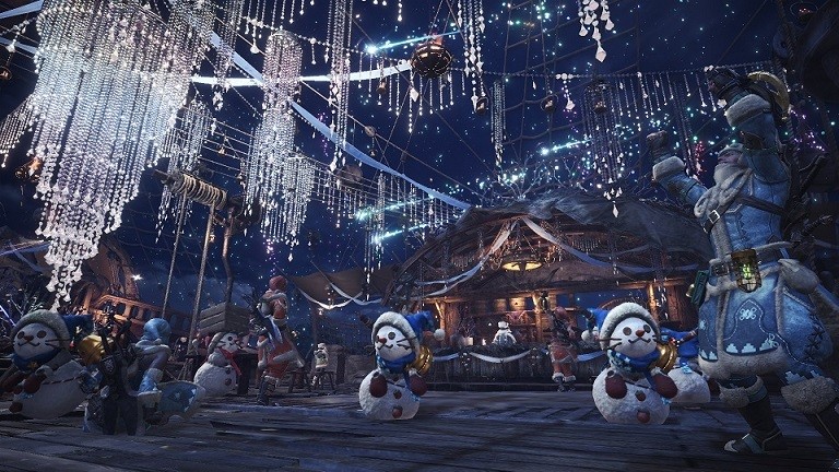 L’event de Noël, intitulé « Le Festival d’Hiver », arrive très prochainement sur les serveurs du jeu Monster Hunter World (notre test), toutes plateformes confondues, à savoir dès le 30 novembre prochain. Mais qu’apporte t-il réellement ? Evidemment, la ville d’Astera se mettra aux couleurs de Noël, avec une nouvelle décoration lumineuse (image ci-dessous) et le personnel de la Poursuite Céleste seront également habillés en conséquence grâce à des tenues « chic et choc ». Mais c’est surtout l’occasion pour les joueurs de repartir à la chasse, et de se plonger dans d’anciennes quêtes qui feront leur réapparition lors de l’event :