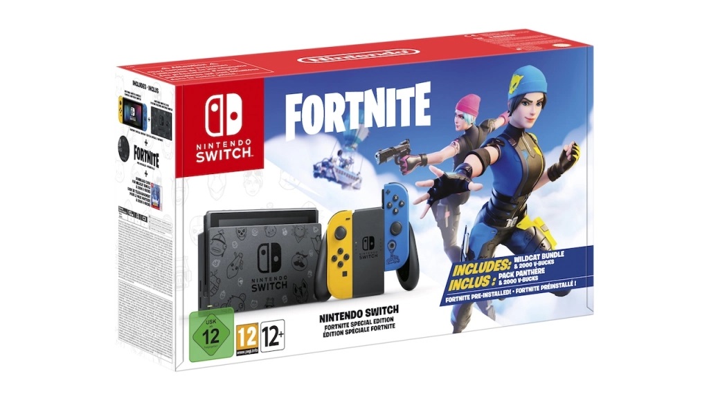Disponible le 30 octobre en Europe, la Nintendo Switch Édition spéciale Fortnite inclura le jeu pré-installé (évidemment), le pack Panthère ainsi que 2000 V-Bucks, de quoi acheter d’autres costumes, emotes, etc.