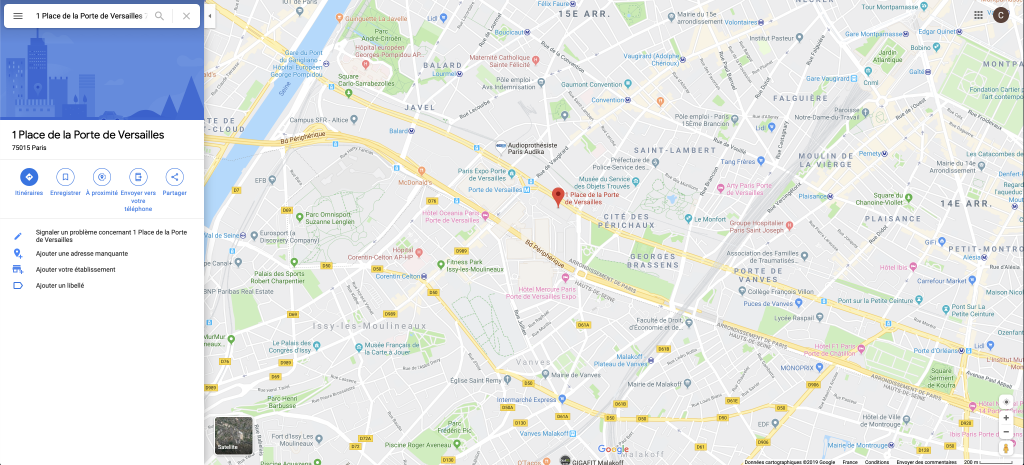 – Depuis le périphérique : Sortie Porte de Versailles.