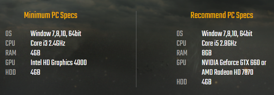 Pour tous ceux qui se demanderaient la configuration requise, sur PC, pour jouer à cette version de PUBG, les développeurs ont communiqué officiellement une image (ci-dessous) récapitulative. Et on peut dire que le jeu devrait être à la portée de tous et de toutes les configurations, car elle ne devrait pas être trop gourmande.