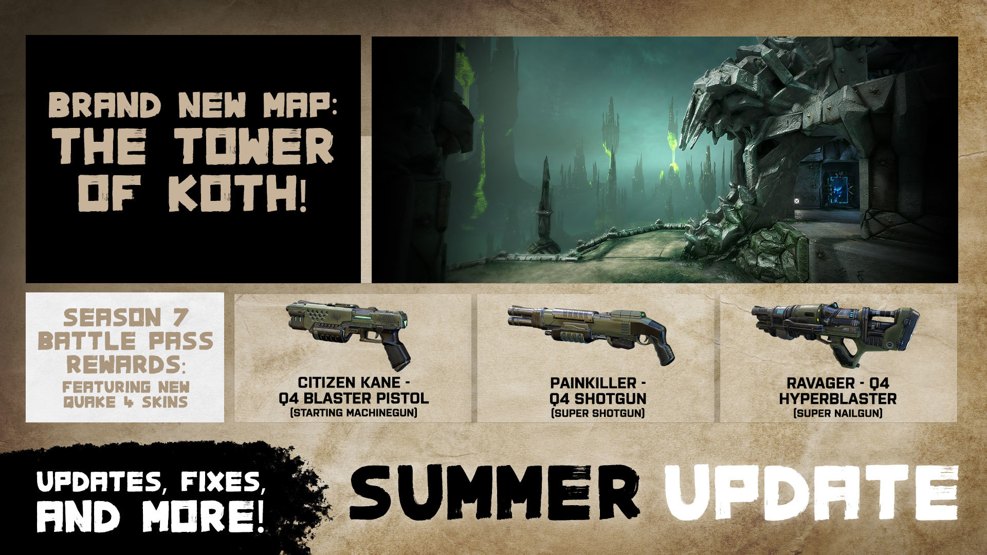 Malgré son modèle Free to Play et ses qualités, Quake Champions n’aura jamais vraiment décollé et le faible contenu alléchant en 3 ans n’a certainement pas aidé à faire pencher la balance du bon côté. Qu’à cela ne tienne ! Même si la communauté actuelle ne compte que quelque centaines de membres actifs, les développeurs ne semblent pas décider à abandonner leur bébé de si tôt. Via une récente mise à jour, Quake Champions a été agrémenté d’une toute nouvelle map nommée « Tower of Koth ». Des modifications pour la carte Awoken, ainsi que des équilibrages et des corrections de bugs divers sont à pourvoir à travers ce patch.