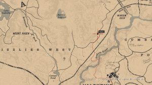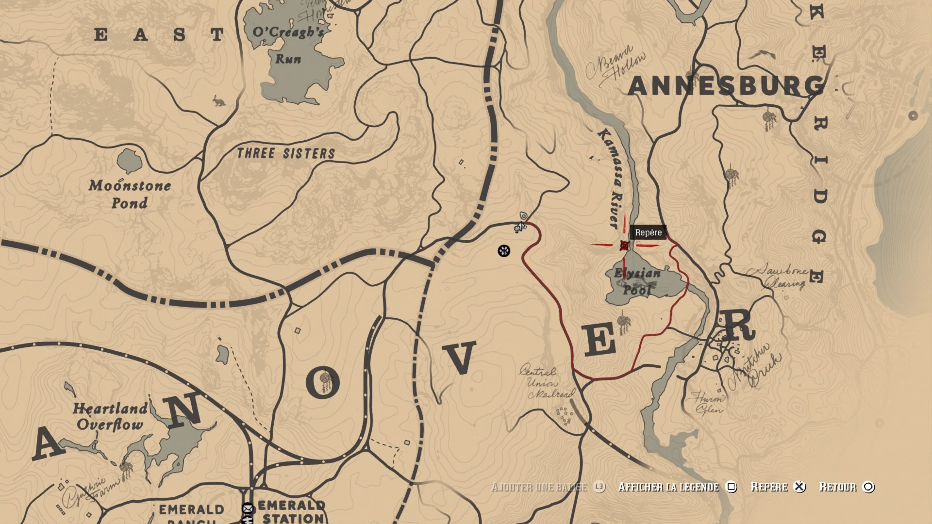 Une fois que vous aurez examiné tous les attrapes rêves, Arthur dessinera un croquis sur son carnet, vous indiquant alors un emplacement particulier (image ci-dessous). Il faudra se rendre à Elysian Pool pour découvrir la suite. Une fois là-bas, vous vous retrouverez devant une cascade d’eau. Entrez à l’intérieur et cheminez tant bien que mal jusque’à atteindre une « salle » éclairée. Vous y découvrirez des peintures de bisons, dignes de la Préhistoire. Incrustée dans l’une d’elle, située sur votre droite, un peu en hauteur (par rapport à l’entrée), il vous sera possible de vous procurer un objet spécial : une pointe de flèche ancienne.