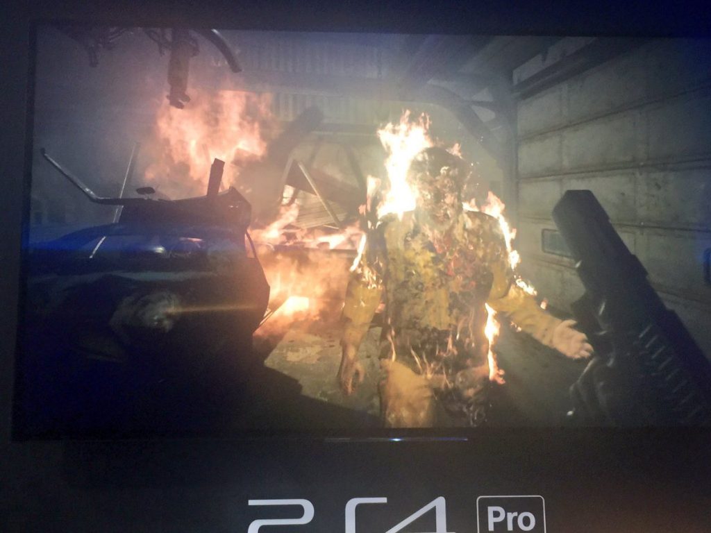 Ces images ont été prises en off-screen, ce qui ne permet pas de les visionner en qualité optimale. Quoiqu’il en soit, nous découvrons ce septième opus tournant sur PS4 Pro et surtout, nous avons un aperçu des combats qui nous y attendent. Oui, il y aura des armes à feu, des monstres et même un manoir rappelant les bons souvenirs du premier épisode de 1996. Voilà qui devrait rassurer les fans de la franchise après une démo qui pouvait donner l’impression de s’éloigner des standards des anciens opus.