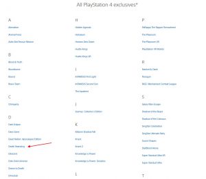 Cependant, la dernière rumeur en date vient à nouveau de Sony en personne, qui pourrait subtilement avoir révélé que ceci était toujours d’actualité comme l’a remarqué un membre de ResetEra. Pour cause, si l’on se rend sur la page du site officiel listant toutes les exclusivités PS4, quelle que soit la langue, on peut remarquer que Death Stranding brille par son absence… alors même qu’il était encore listé au 31 mai dernier, comme le prouve ce site d’archives du web.
