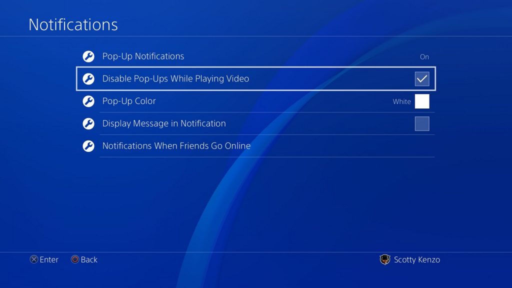 - Mise à jour des notifications : Il est désormais possible de désactiver les notifications contextuelles lorsque nous regardons un film ou une série sur PS4. Ce paramètre est activé par défaut. La couleur de la fenêtre des notifications pourra être choisie entre le noir et le blanc.