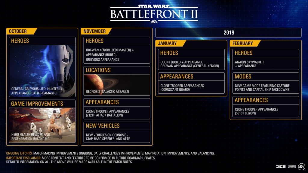 En attendant, voici la nouvelle roadmap de Star Wars Battlefront II en image :