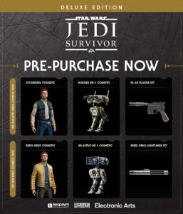 D’autres internautes et médias ont même pu mettre la main sur d’autres trouvailles liées à Star Wars Jedi: Survivor, comme par exemple des costumes inédits qu’il sera possible d’obtenir en précommandant le titre ou en se procurant la Deluxe Edition :