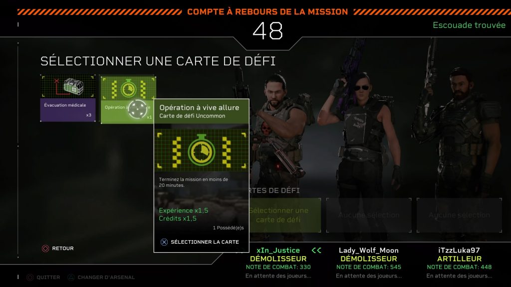 Comme vous l’aurez compris, le jeu est principalement coopératif et, forcément, le teamplay va devoir être respecté pour tenter de survivre au mieux aux hordes de Xenomorphs. Bien entendu, le choix de sa classe avant de partir en mission aura un impact majeur sur son bon déroulement. Autant dire qu’il faudra, préférablement, se mettre d’accord sur qui joue quoi afin que chaque classe puisse combler un certain besoin, au lieu de tous sélectionner la même par égoïsme. Chaque classe possède ses armes de prédilection, ses atouts ainsi que son propre système de leveling indépendant. Comprenez par-là que plus vous jouerez une classe, plus destructrice et robuste cette dernière deviendra. Quelque chose d’assez classique dans les jeux arborant une dimension RPG. Gagner des niveaux dans une classe vous permettra aussi de débloquer du nouvel équipement ainsi que des améliorations diverses que vous pourrez attribuer à vos atouts afin de modifier ou améliorer leurs spécificités. Afin de booster vos gains après avoir rempli votre mission, il sera possible d’utiliser une carte dite de « défi ». Ces cartes vous proposeront de remplir un objectif bien particulier contre l’acquisition de points d’XP ou de crédits supplémentaires. Il existe plusieurs niveaux de rareté pour les cartes de défi, avec des tâches plus ou moins ardues ainsi que des gains s’accordant à la difficulté de cette dernière.