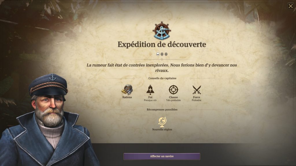 Les colonies du Nouveau Monde fonctionnent de la même manière que celles de l’Ancien Monde, à la différence de n’avoir qu’une seule et unique évolution sociale. Les expéditions, nouveauté également, viennent à proposer aux joueurs la possibilité de partir en excursion pour gagner des objets. Distribués aléatoirement, vous devrez attribuer un bateau, ainsi que des ressources à ce dernier pour qu’il mène à bien son voyage. Attention cependant, il faudra faire les bons choix pour ramener à bien les fruits de votre expédition.