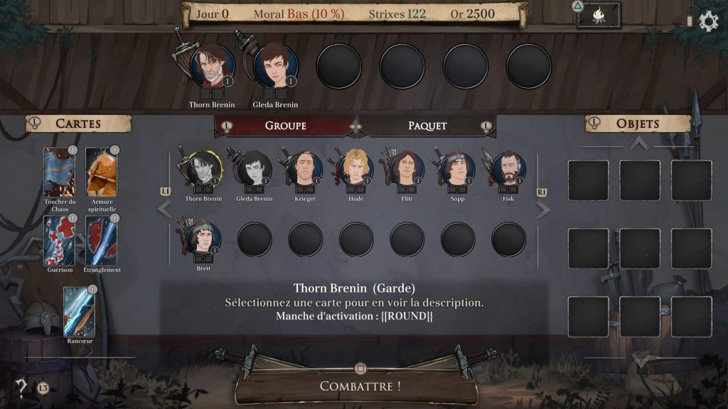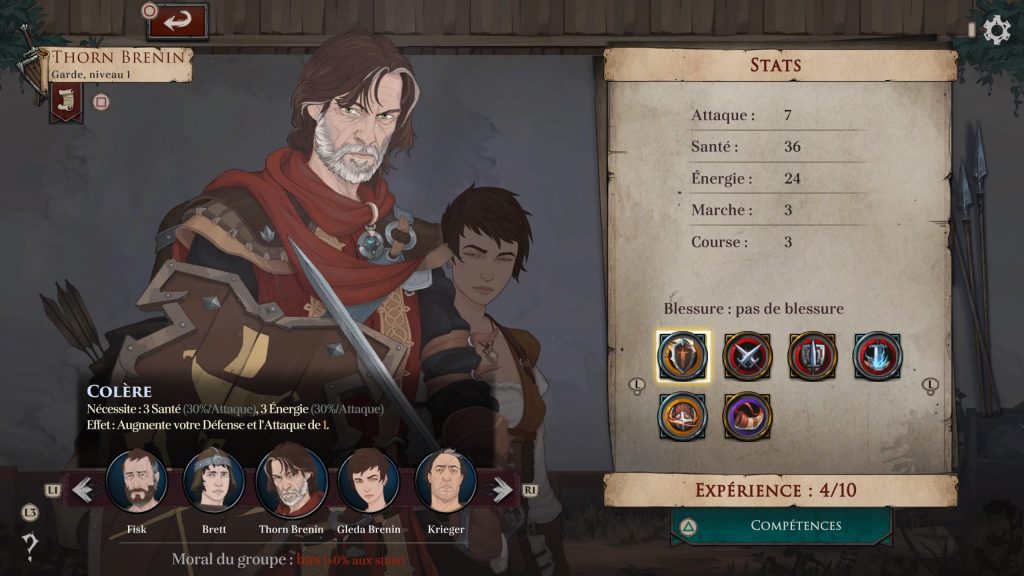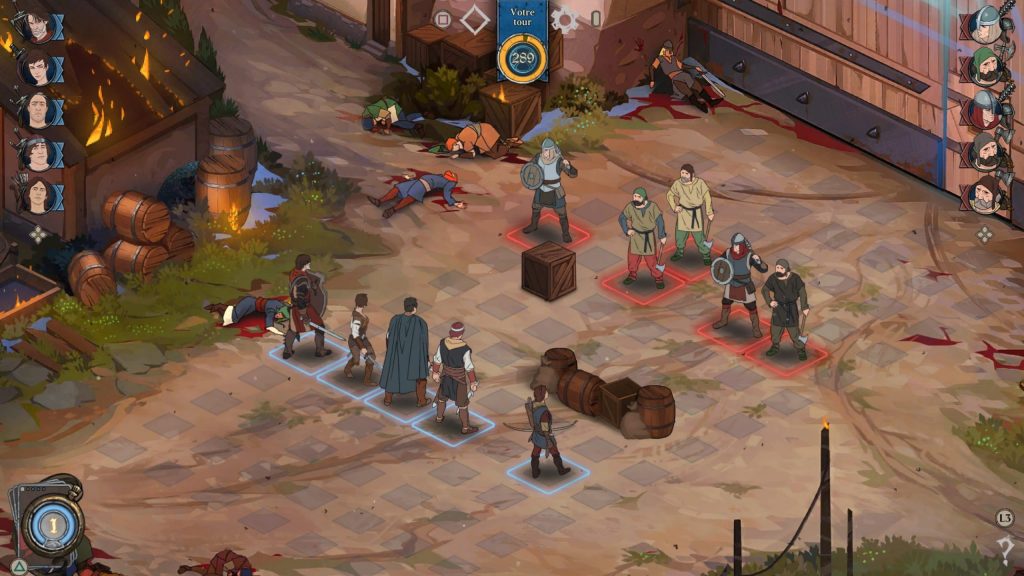 En plus de pouvoir débloquer des compétences pour vos personnages, il est possible d’attribuer des items plus ou moins magiques afin d’octroyer des bonus passifs à ces derniers. Ils sont notamment récupérables après chaque combat et ont une certaine importance. Il faudra se pencher sur cet aspect pendant quelques minutes car les combats sont relativement ardus et peuvent durer sur la longueur. D’ailleurs, ils sont régis par la règle du tour par tour : le joueur effectue une action avec un seul et même personnage (déplacement, attaque ou défense) avant de laisser la main à l’IA adverse. Le personnage utilisé ne sera ainsi plus disponible pour le reste du round complet. Tout doit donc être réfléchi ou maîtrisé, au risque de perdre vos compagnons de route pour tout le reste de l’aventure. Et dans certains cas, vous le verrez, il ne faudra malheureusement pas hésiter à sacrifier l’un d’entre eux pour qu’un autre, plus puissant ou qui a votre préférence pour n’importe quelle raison, ne meure définitivement. Tel un véritable maître du jeu, façon Donjon & Dragon ou Livre dont vous êtes le héros, le joueur se trouve complètement impliqué et responsable tout du long.