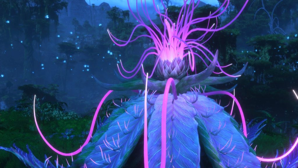 Avatar: Frontiers of Pandora a une force énorme : il se base sur un univers très fort qui a marqué la fin des années 2000 de par son visuel, mais aussi sa richesse et les possibilités qu’il offre.Un point bien assimilé par les équipes d’Ubisoft qui ont construit leur jeu en se centrant sur ce dernier. Alors que l’on pourrait rapidement se lasser d’un énième open-world, ici on se retrouve subjugué par la beauté des décors. Le jeu arrive à déclencher l’effet Waouw tant recherché par ce genre d’univers avec notamment les phases de jeu en grotte et la nuit dans la forêt des Kinglors qui offrent une vision luminescente de la planète, la même qui a conquis des centaines de milliers de spectateurs dans les salles sombres en 2009. Chacune des régions offre une faune et une flore bien distinctes des précédentes. Encore une fois, les fans de la première heure ne pourront qu’apprécier découvrir en plus l’univers de James Cameron.