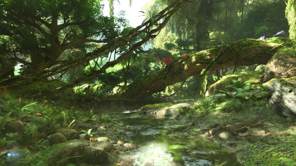 Malgré l’utilisation de monture, il est bon de notifier que nous incarnons un Na’Vi qui est très agile dans la nature et cela s’en ressent. Courir, sauter, escalader ou encore grimper sont des mouvements absolument grisants dans ce Avatar. Il est possible de grimper de nombreux points rocheux qui possèdent de nombreux reliefs pour rendre l’ascension possible. Il est aussi possible de sauter d’un tronc d’arbre courbé pour attraper une liane et monter au second pour continuer notre course.