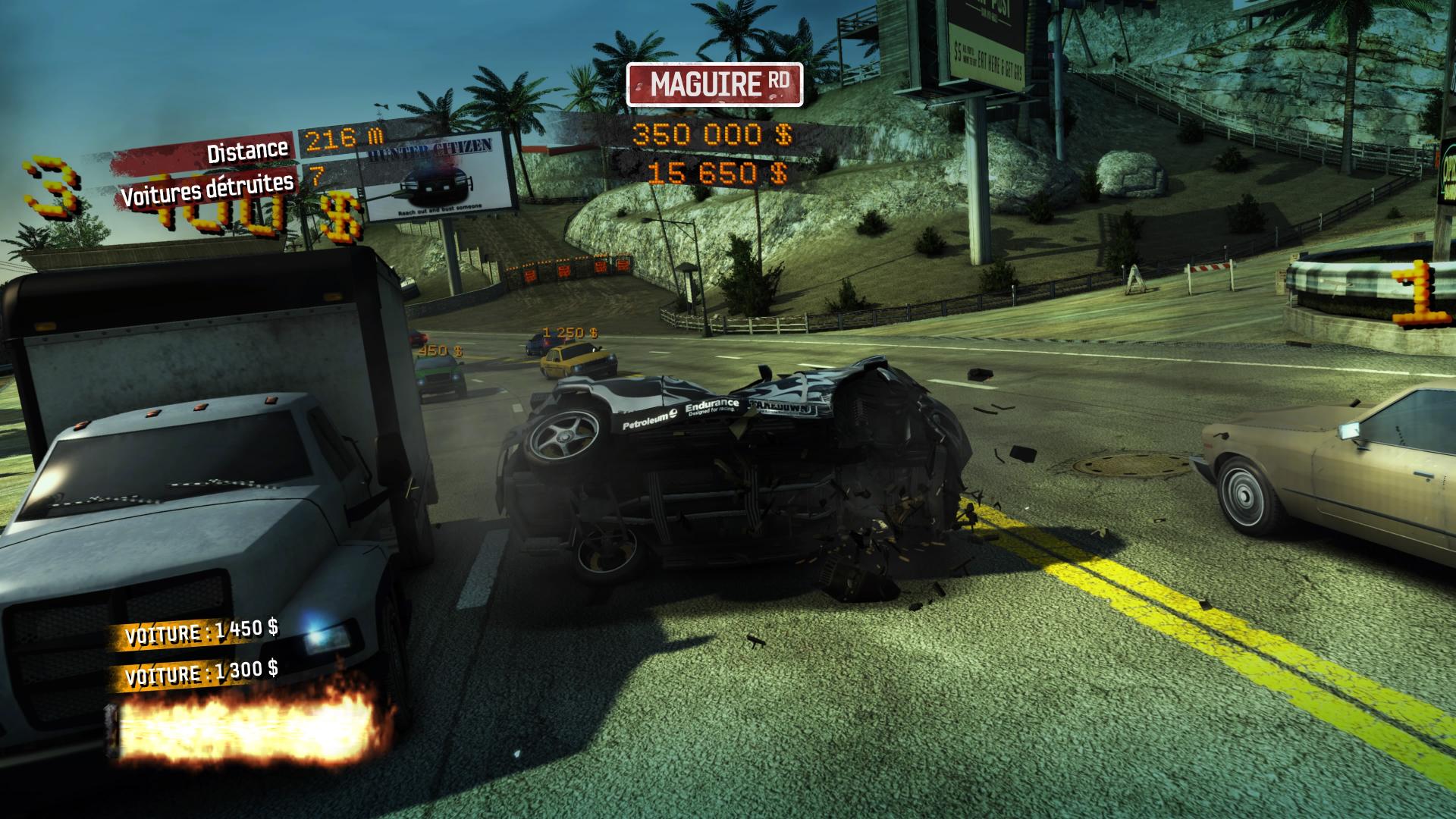 Pour autant… quel plaisir ! Bien qu’il soit désormais difficile de le comparer face aux dernières productions (et notamment aux excellentes de Playground Games), Burnout Paradise Remastered reste à jamais un défouloir sans précédent. Rapide et très nerveux, l’opus dont il est question brille de par sa simplicité, en nous permettant d’avoir tout ce que nous souhaitons : aller vite, en ayant le contrôle, et en pouvant effectuer des actions irréalistes mais jouissives. Son retour nous fait en revanche nous poser des questions sur le fondement des jeux d’arcade en 2018 : les joueurs n’arriveraient-ils plus à trouver du plaisir en jouant aux derniers titres similaires ? Peut-être, à en croire les critiques sur les récents Need for Speed, pour ne citer qu’une autre licence d’Electronic Arts. En fait, Burnout Paradise Remastered amuse surement car il reste complètement détaché du monde réel, dans la mesure où il permet de « booster » très longtemps, d’effectuer des tonneaux improbables et même de balancer librement son véhicule sur la voie publique afin de décrocher des points bonus. Burnout, c’est le plaisir de ne pas se soucier des limites physiques, des forces de l’ordre ou de s’attacher à un scénario digne d’un blockbuster hollywoodien. C’est sans doute pour cela qu’il était attendu de nouveau, 10 ans après sa première mise en circulation, parce qu’il n’essaie pas – à l’instar du reboot de Most Wanted en 2012 – de tomber dans le cliché du spectaculaire.