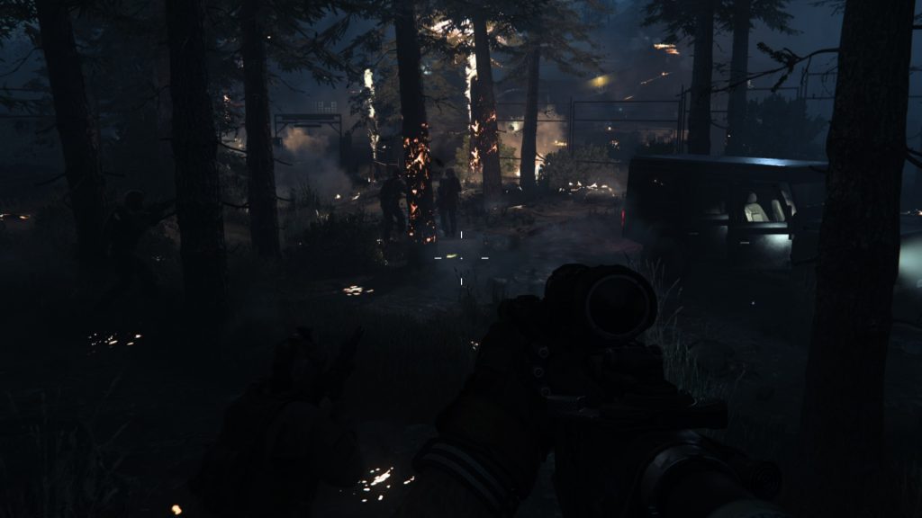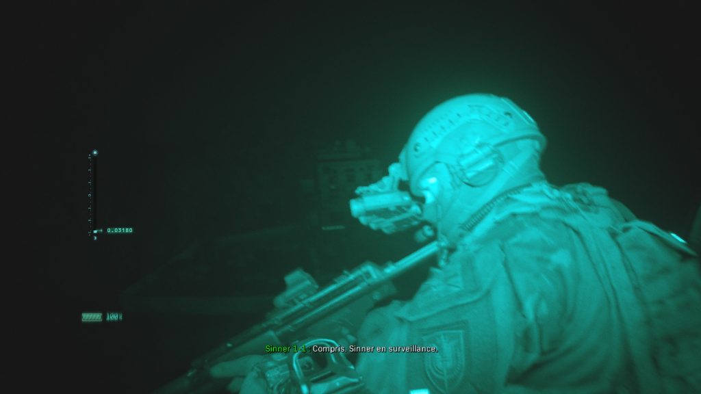 Évoqué quelques lignes plus haut, Call of Duty: Modern Warfare fait peau neuve avec un nouveau moteur. Et quel moteur ! Même si ce dernier a ses défauts, comme des cinématiques pesantes qui cachent des chargements tout aussi lourds créant des désynchronisations gênantes, ou encore le fait qu’il faut être forcément connecté à internet pour jouer, ce qui entraîne au passage de nombreux crashs, il ne reste que des qualités. En embarquant des technologies DX12 à la pelle, Beenox démontre qu’il est possible de faire des moteurs peu gourmands tout en demeurant actuels, Ray-Tracing off bien entendu. Sans éclater les rétines, cet opus se montre particulièrement beau et fluide. Cela se ressent grâce à une maîtrise de la mise en avant de la matière (tissu, métal, grain de peau, poils et cheveux), mais aussi via un jeu d’éclairage/ombrage qui donne une véritable profondeur aux détails. Aussi, les animations jouent un rôle majeur à cet ensemble, accorder à la recherche du mouvement pour la mise en scène et la fluidité du moteur, le tout conjuguant avec les réflexions lumineuses à la matière, donne un aspect cinématographique en jeu saisissant. Pour conclure ce tableau vivant, les particules et les jeux de lumière alourdissent l’ambiance générale en donnant du grain et du volume à l’image. Un petit mot sur la vision nocturne qui est quant à elle impressionnante, c’est à se croire au cinéma tant cette dernière est bien retranscrite.